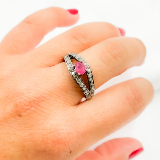 This design adds personality by combining diamonds with a colored gemstone. It feels unique and expressive, perfect for someone who enjoys jewelry that reflects individuality. The gemstone adds warmth and contrast, while the silver base keeps the overall look elegant and wearable rather than overly bold.
