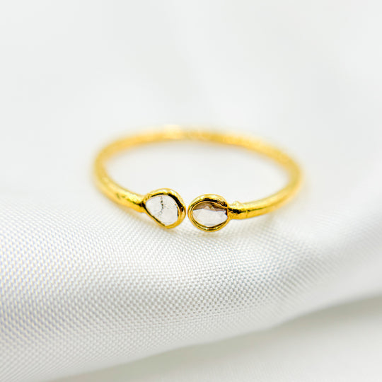 This ring is perfect for those who appreciate subtle elegance. Tiny pave diamonds line the band, creating soft sparkle without overwhelming the design. It works beautifully as a daily-wear ring or as part of a stack, making it both practical and stylish.