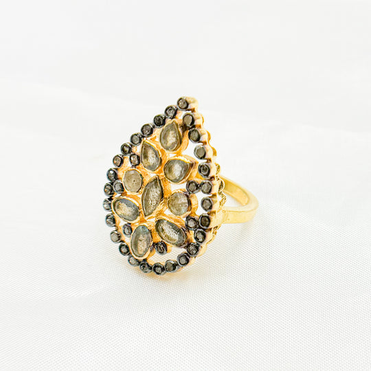 17. Silver Ring with Floral Diamond Motif