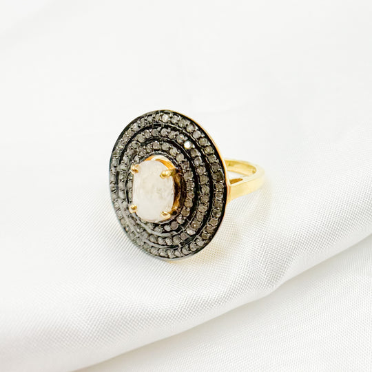 4. Diamond Sterling Silver Statement Ring with Gemstone