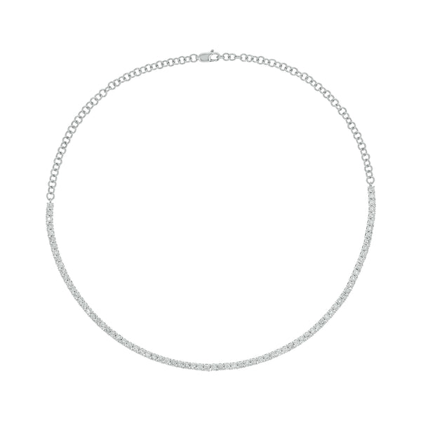 14K Solid Gold Diamond Tennis Choker Necklace. Available in White and Yellow Gold. Size: 16 inch. Lobster Closer. Sold by Piece. GRS WT: 14.09 - DIA WT: 1.97 - DIA QTY: 79 - DIA QLTY: HI/I2-I3 - CLr_WT: 13.28.