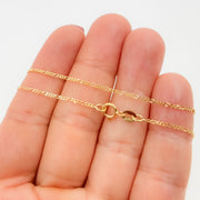Cable Chain Uniform oval links connected in a clean, flat line. The most classic and versatile chain design. Works beautifully with a pendant or worn alone. Available from fine gauges under 1mm up to 2mm for a bolder look.