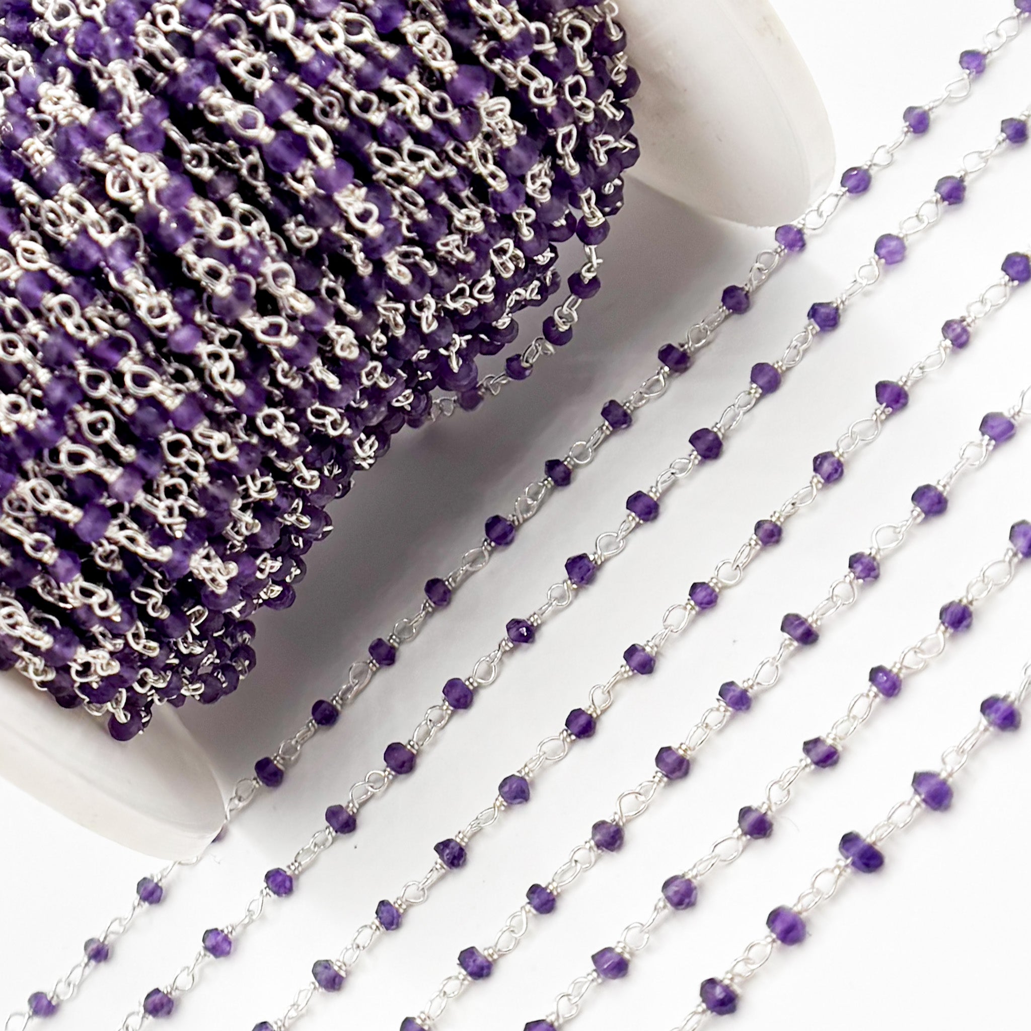 Explore the beauty of Amethyst Stones with our carefully crafted collection. Our Amethyst wire chain gemstones and Amethyst wire wrap gemstones are perfect for creating stunning, handmade jewelry. Attraction and desirability are two reasons that Amethyst gemstone is considered one of the most captivating stones in jewelry. Amethyst is a notable stone known for its bold violet to deep purple gemstones. Amethyst has been used for centuries as a representation of peace, clarity, and spiritual development. Many purport calming and balancing energy associated with amethyst gemstones, which may just make it a fun addition to any jewelry collection.